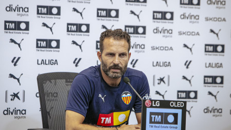 Roda de premsa de l'entrenador del Valencia CF en la prèvia del partit de la Jornada 2 de LaLiga EA Sports