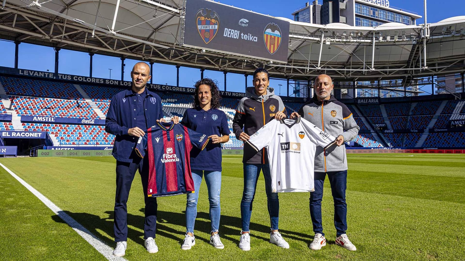 La rueda de prensa previa al Derbi Teika ha reunido al técnico del Valencia CF Femenino, a José Luis Sánchez Vera, entrenador del Levante UD, y a las capitanas de uno y otro equipo, Marta Carro y Alharilla Casado respectivamente.